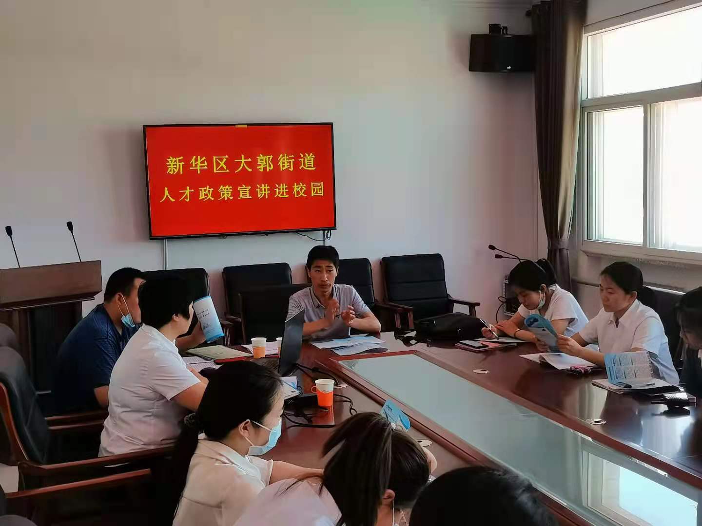6月10日下午,石家庄天使护士学校邀请新华区人才办专员与大郭街道专员到石家庄天使护士学校进行人才政策的宣传讲解。